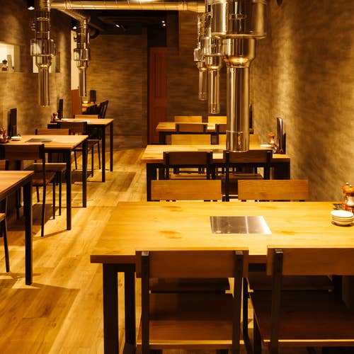 穏やかな住宅街の片隅に佇む和モダンなホルモン焼肉店。